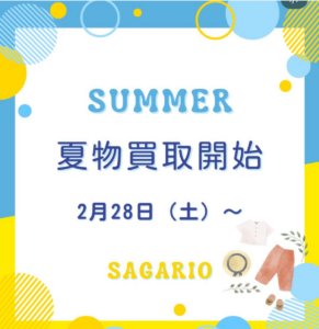 また、衣類等についてはは2月28日(土)より「夏物衣類」買取スタートとなります。