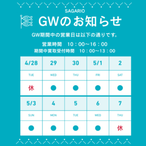 4月28日~5月6日 買取受付時間 10:00~13:00